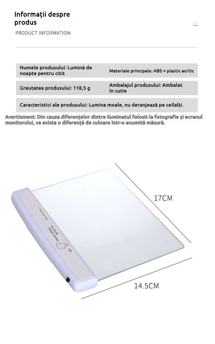 Lampă de lectură cu vedere nocturnă, panou LED plat, lumină de lectură care protejează ochii
