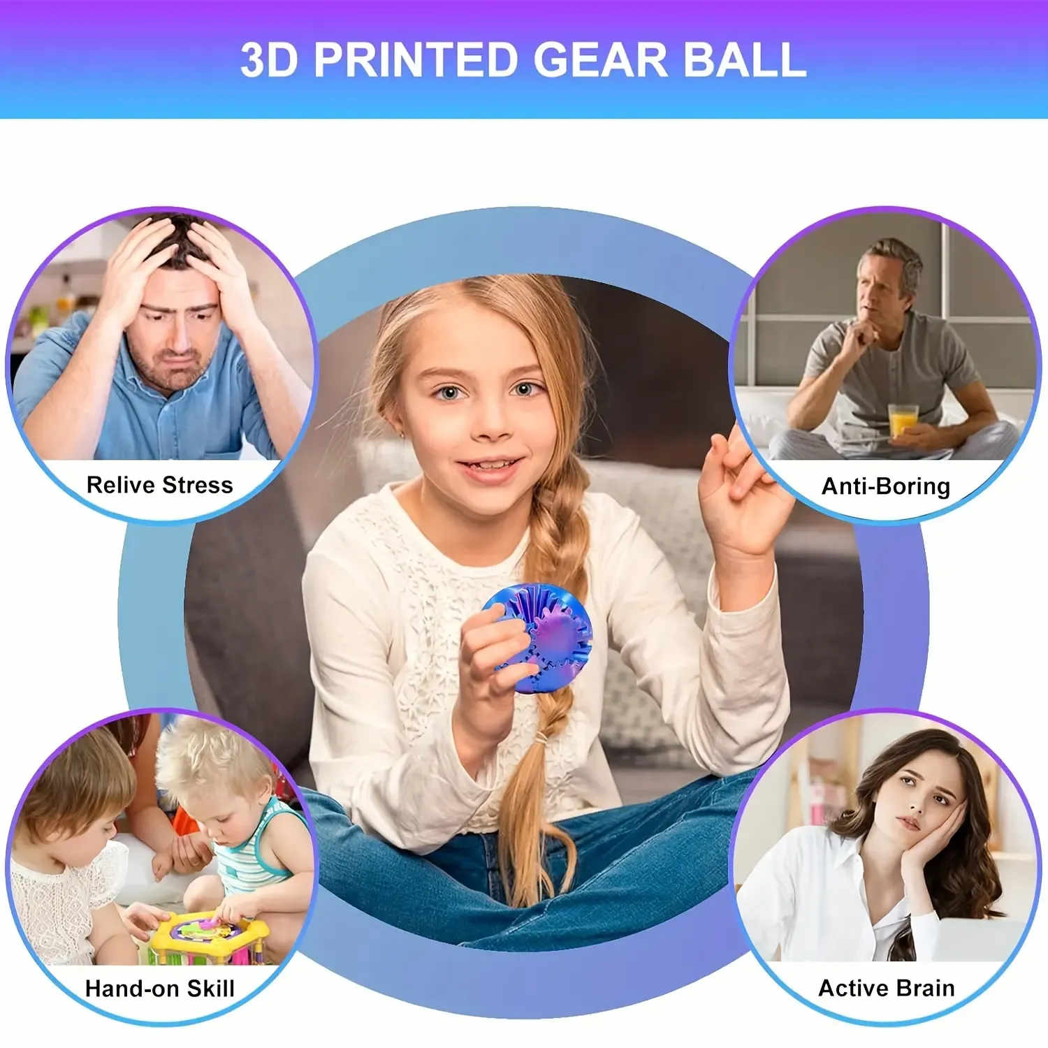 【Cumperi 2, primești 2 gratis】 Minge creativă cu rotițe 3D colorate, jucărie antistres