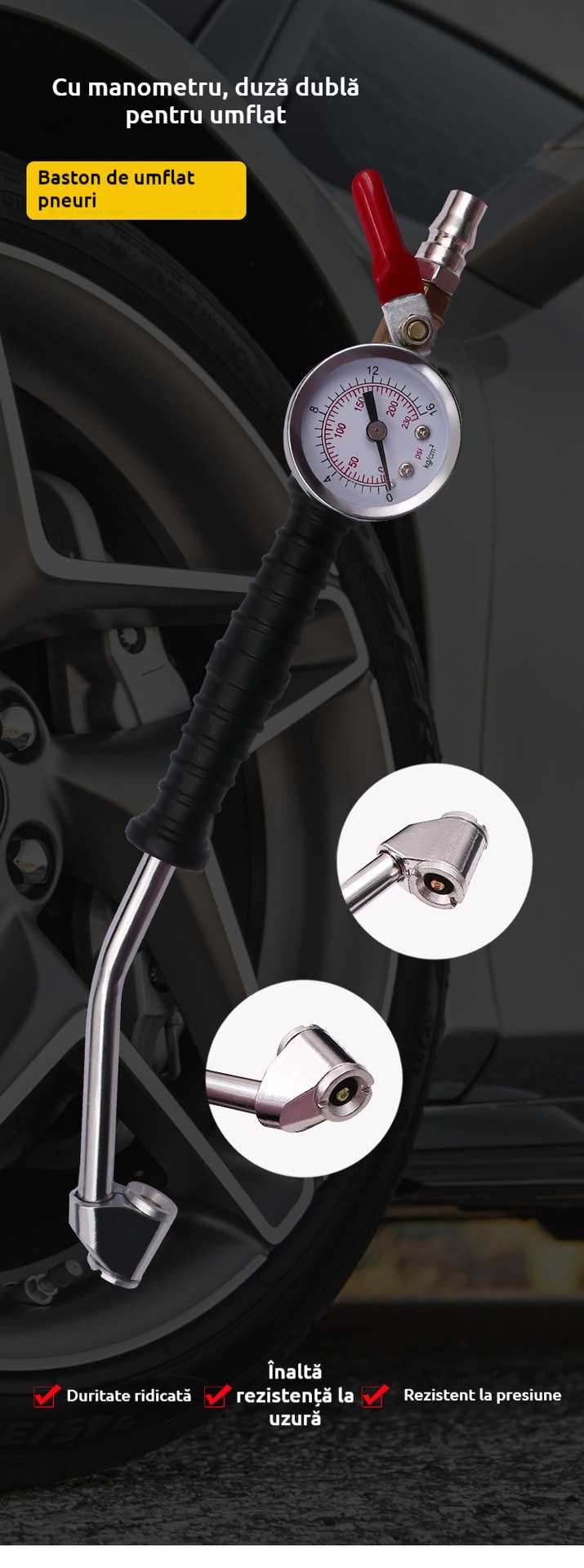 Supapă auto gonflabilă cu manometru digital pentru anvelope, rezistentă, accesorii pentru camioane