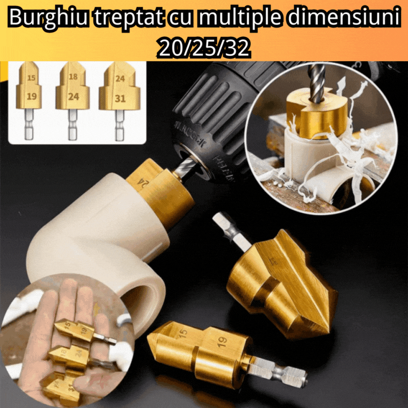 Burghiu treptat cu multiple dimensiuni 20/25/32, Unealtă de conectare a țevilor de apă cu tijă hexagonală