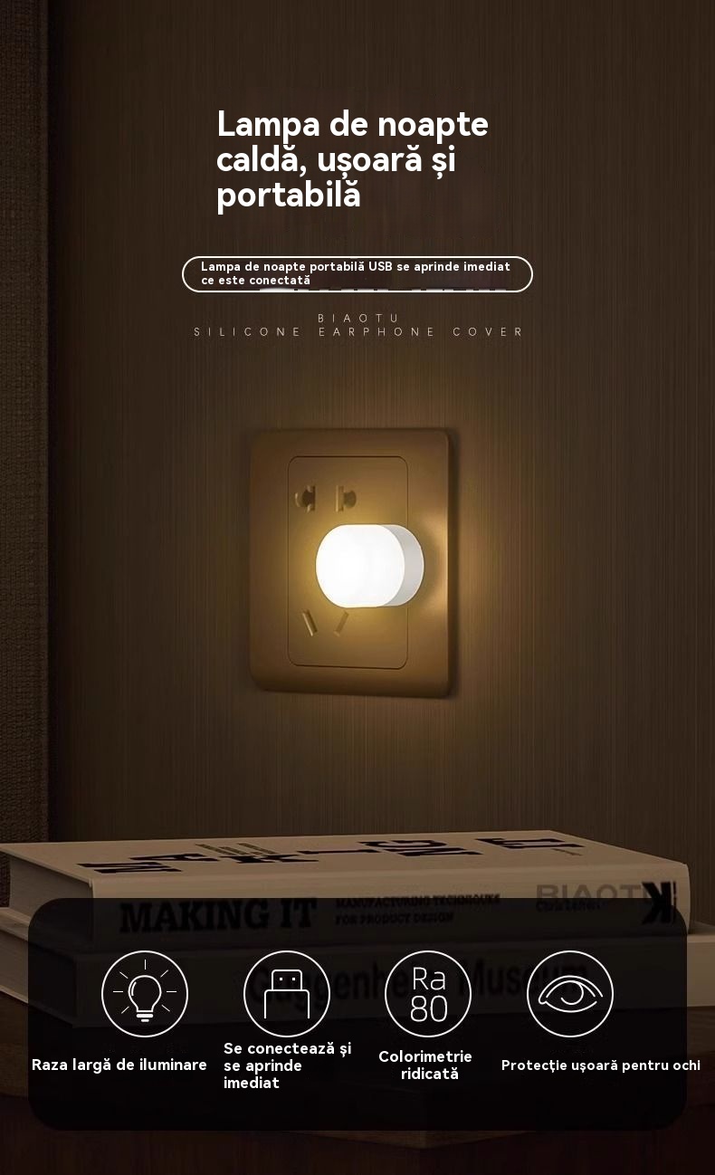 【10 bucăți】Lumină de noapte creativă USB Lampă de masă mică, cu protecție pentru ochi, fără fir, ideală pentru dormitor; decor elegant cu alimentare prin priză, lumină ambientală pentru noapte.