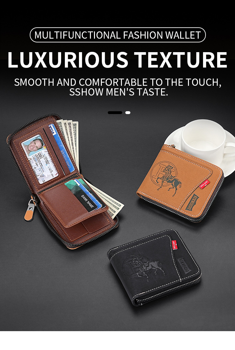 【【Cumpărați 1, primiți 1 gratis】】Portofel bărbătesc nou și elegant, de dimensiuni mici, cu fermoar, în stil retro.
